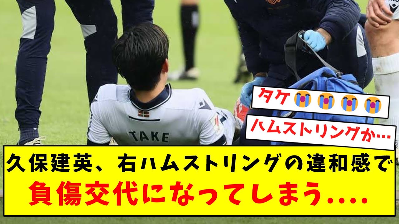 [Super sad news]Takefusa Kubo has been substituted with an injury due to discomfort in his right hamstring....