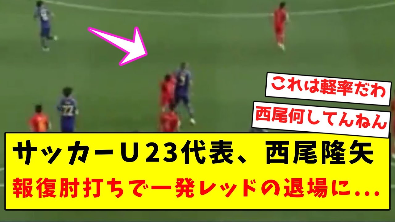 [Sad news]U23 soccer team member Takaya Nishio is sent off for a retaliatory elbow attack…