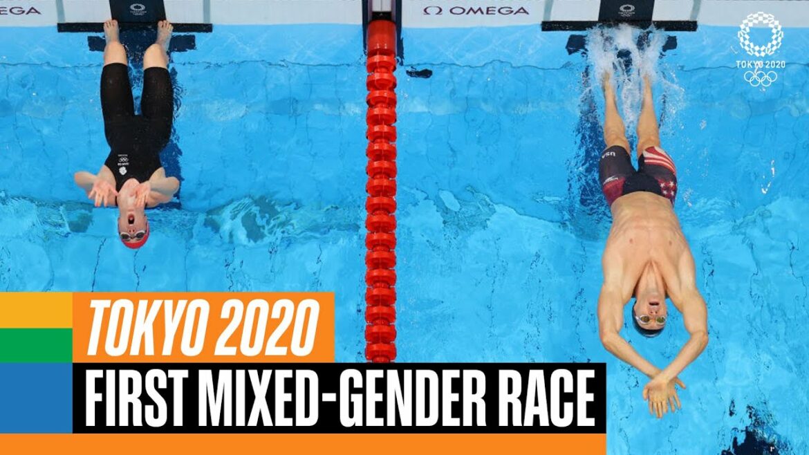 In the swimming mixed 4x100m medley event teams can choose the order in which their swimmers compete, meaning during some legs women face off directly against men.