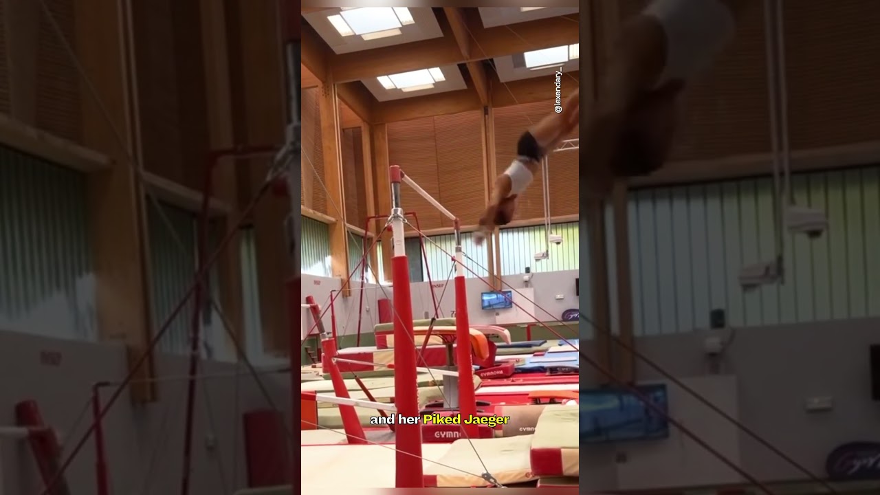 Jordan Chiles is finessing her Aerial Walkover on beam, rated D, and her Piked Jaeger on the uneven bars, also rated D.