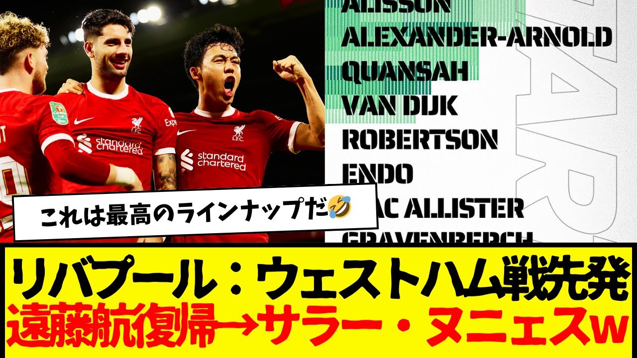 Liverpool’s loss to Everton has put them in a situation where winning the championship is almost impossible. Wataru Endo returns to the starting lineup. Salah and Nunez, who are not feeling well, started on the bench. #Liverpool #Wataru Endo #Premier League #Manchester City #Arsenal #Goal #Klopp #Takehiro Tomiyasu #West Ham #Goal #Starting lineup #twitter #nanj ▶We deliver the latest soccer information and topics. “Transfer information”, “Transfer rumors”, “Match results”, “Personal observations”, “Moving anecdotes”, “LOL episodes”, etc. *Basically, we only post content related to soccer. ▶Subscribe to the channel If you like it even a little, please give it a like. I try to post at least once a day. ▶When posting, the purpose is not to slander or infringe on copyright. Although we have taken great care in creating this site, if you have any concerns, we would appreciate it if the copyright holder could contact you directly. I will respond as soon as possible.