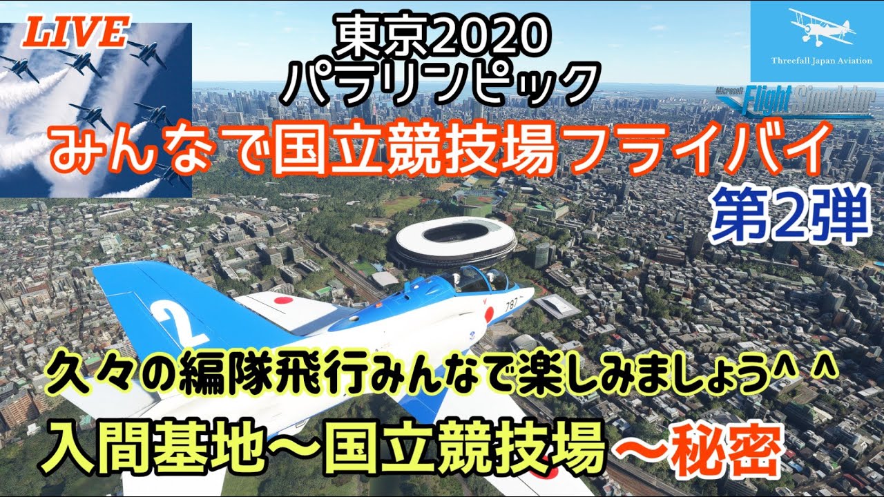 [Live Streaming]Blue Impulse Large Formation, National Stadium Flyby 2nd Stage! Tokyo 2020 Paralympic Opening Day Everyone flyby! ☆ Iruma Air Base-National Stadium- ☆ Former F-15 Pilot[MSFS2020]