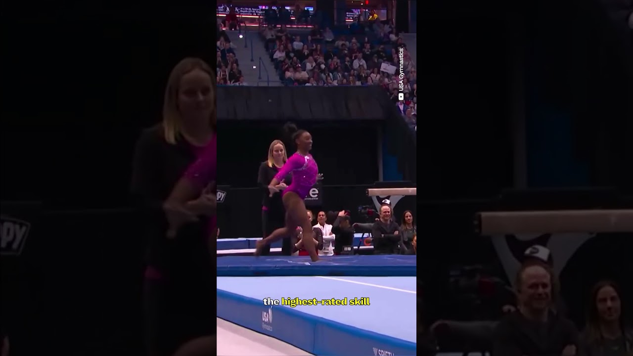 On floor, Simone brought back her Triple Double Tuck, a.k.a. the Biles II, the highest-rated skill in Women’s Artistic Gymnastics, valued at J. Her start value went from a 6.8 to a 7.0 — the highest in the world.