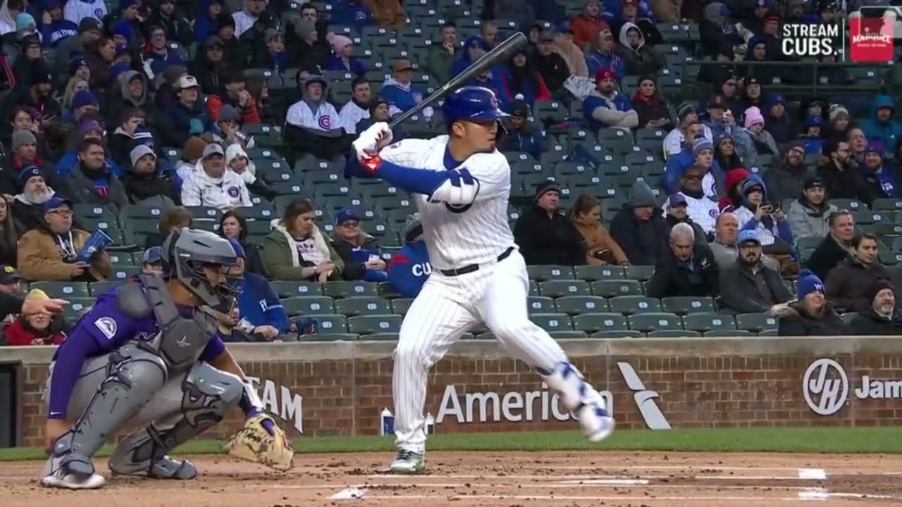 Seiya Suzuki crushes a two-run home run to center field, giving the Cubs a 2-0 lead in the bottom of the 1st inning