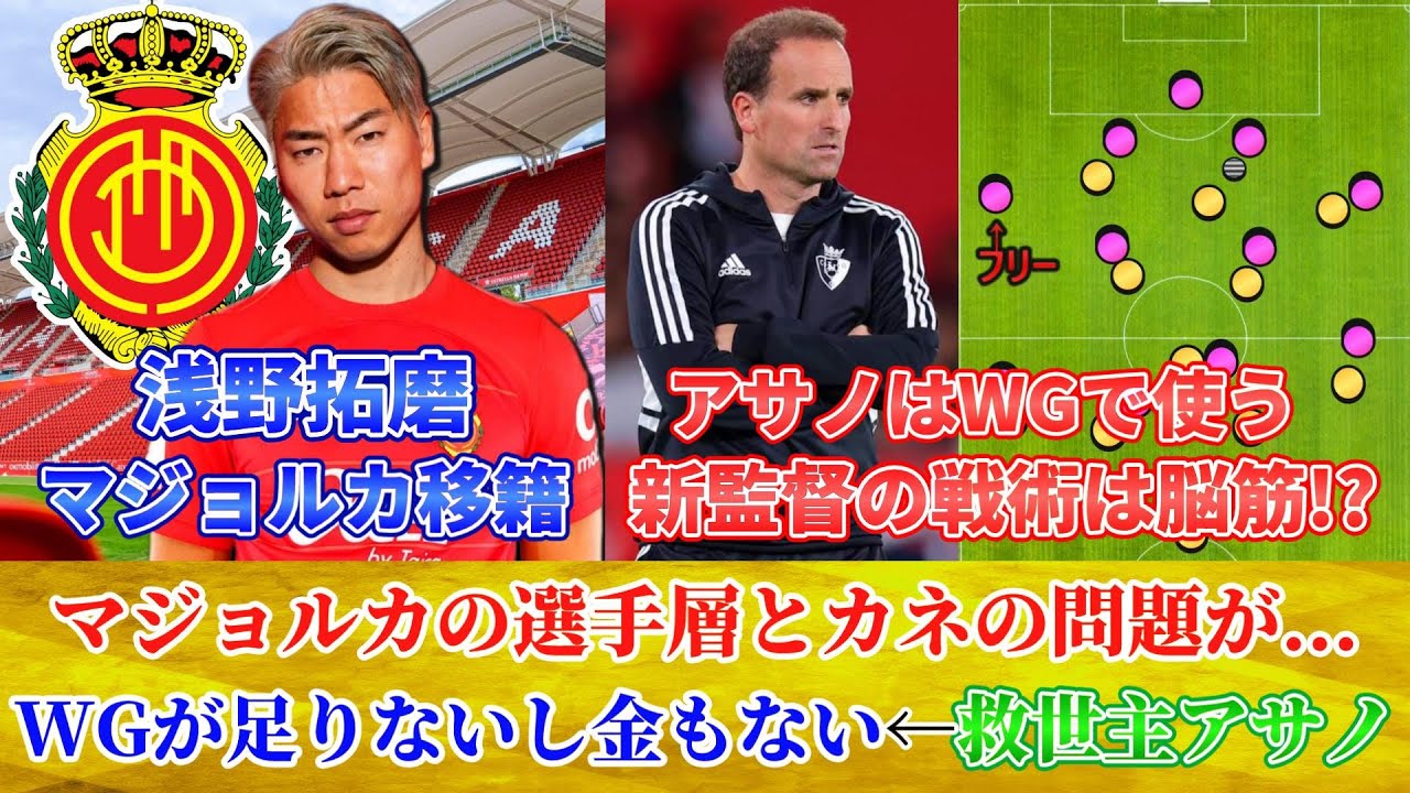 Japan national team forward Asano Takuma has made a full transfer to the Spanish first division club Mallorca!! ============================== I have briefly analyzed Mallorca’s performance last season, their manager, rivals, tactics, etc. ============================== It’s an exciting transfer. Mallorca, which has no money and no wingers, and Asano Takuma, who wants to play in a major league, are a perfect match. ================================= The audio was made using Zundamon by VOICEVOX. =========================== #Asano Takuma #Japan national football team #football #Hansig Flick #Rüdiger #Kubo Takefusa #Sanfrecce Hiroshima