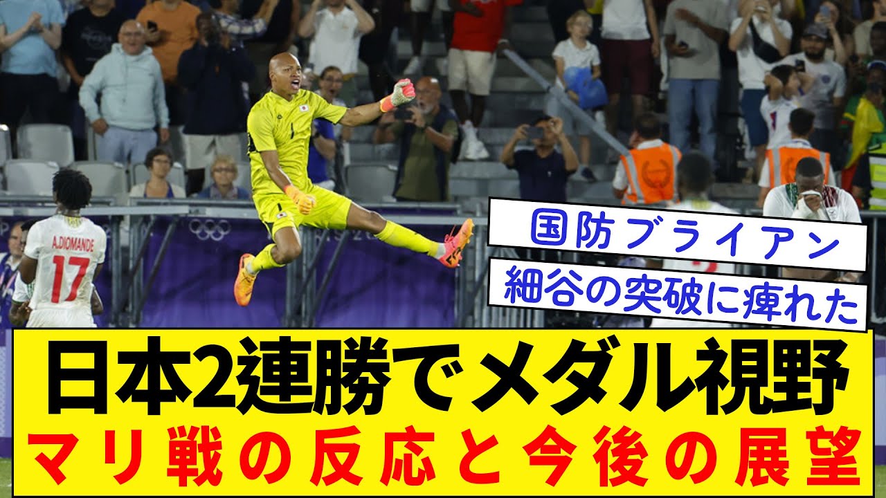 #Soccer #Summary #Olympics #u23 #Mali #ParisOlympics #Kokubo #KokuboBrian #FujitaChima #SatoKain #YamamotoRihito #EndoWataru #TomiyasuTakehiro #MitomaKaoru #KamadaDaichi #ItoHiroki #ItoJunya #KuboTakefusa #Bulletinboard #Nanj #2ch #5ch[Channel/Video Description]This channel summarizes topics related to soccer and the reactions of soccer fans in Japan and overseas to them. In this video, we talk about the U23 Japan National Team, who won two consecutive games at the Paris Olympics and advanced to the group stage.[Channel Policy]This video is not intended to slander or infringe copyright. If you have any problems, please contact us at the address below. We will respond promptly and delete it. youxiziqiaokou@gmail.com[BGM and sound effects used]BGM: Yuki Sound effects: Sound Effect Lab https://soundeffect-lab.info/
