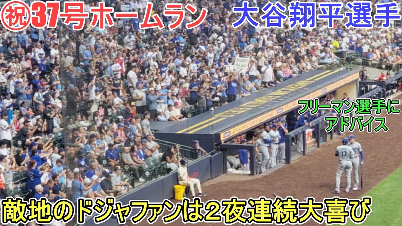 ㊗ The fielder didn’t move a single step on the 37th home run, and the 126m shot went straight into the right field stands and into the second-tier seats, causing a roar from the fans in the opposing team. Dodgers fans who came to support their team in Milwaukee were delighted, standing up for two nights in a row. vs. Milwaukee Brewers – Series 2 – Shohei Otani, playing as the DH. 8.13.2024 @shinsukehandyman #ShoheiOtani #Homerun #Dodgers