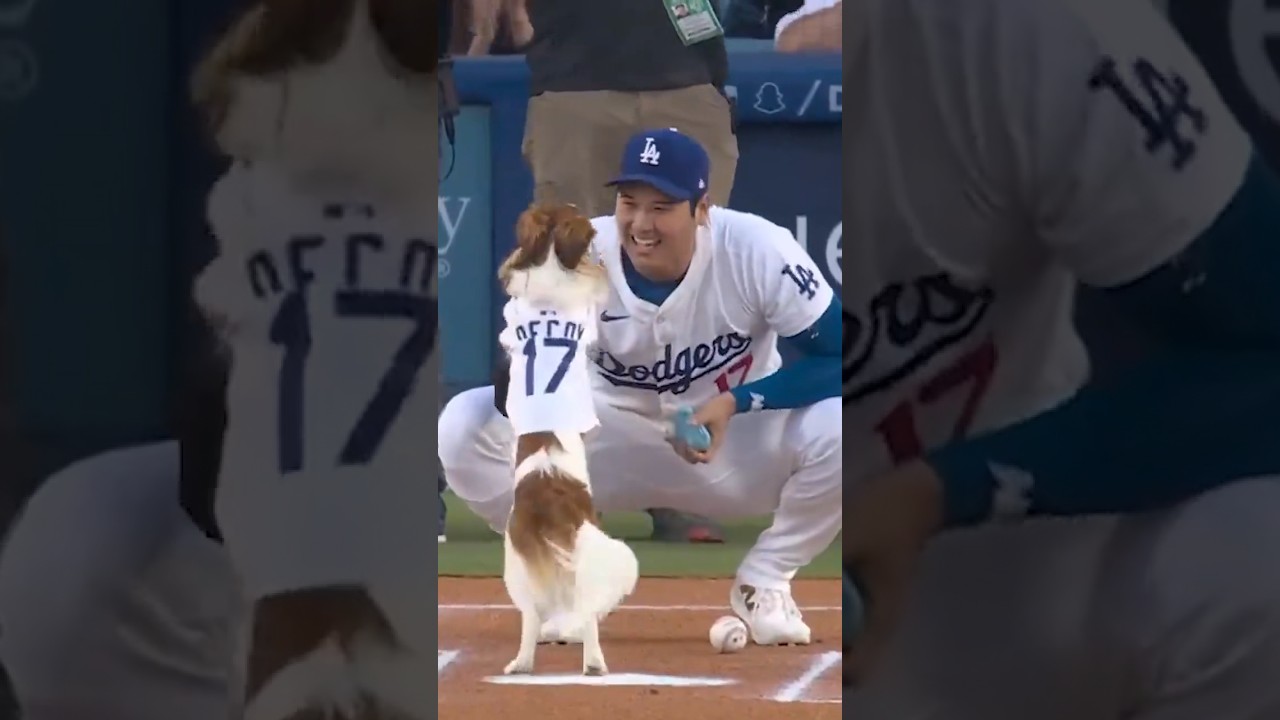 Shohei’s dog Decoy “throws out” the first pitch 😂