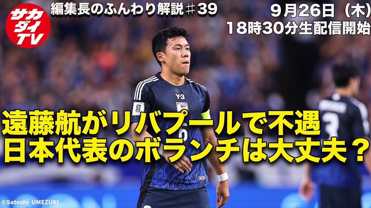 Ahead of the two consecutive matches in October (against Saudi Arabia and Australia) in the final Asian qualifying round for the World Cup, the editor-in-chief of Soccer Digest TV will offer his own opinion on the defensive midfielders of the Japanese national team. *Thank you for watching and commenting. ・Abusive comments against performers or viewers ・Content unrelated to the main program ・Repeated posts of the same content Please note that comments such as those listed above will be restricted. Please note that we may not be able to respond in time, so if you find the comment offensive, please do not respond and block the comment yourself.[Results and schedule of final qualifying round]9/5 vs China (home) 7-0 9/10 vs Bahrain (away) 5-0 10/10 vs Saudi Arabia (away) 10/15 vs Australia (home)[Called up players]GK Osako Keisuke (Sanfrecce Hiroshima) Tani Akio (FC Machida Zelvia) Suzuki Zion (Parma/Italy) DF Nagatomo Yuto (FC Tokyo) Taniguchi Shogo (Sint-Truiden/Belgium) Itakura Ko (Borussia Mönchengladbach/Germany) Nakayama Yuta (FC Machida Zelvia) Machida Hiroki (Union Saint-Giroise/Belgium) Sugawara Yukinari (Southampton/England) Mochizuki Henry Kaiki (FC Machida Zelvia) Takai Kodai (Kawasaki Frontale) MF/FW Endo Wataru (Liverpool/England) Ito Junya (Stade de Reims/France) : Takuma Asano (Mallorca/Spain) Takumi Minamino (Monaco/France) Hidemasa Morita (Sporting/Portugal) Daichi Kamada (Crystal Palace/England) Kaoru Mitoma (Brighton/England) Koki Ogawa (NEC/Netherlands) Daizen Maeda (Celtic/Scotland) Reo Hatate (Celtic/Scotland) Ritsu Doan (Freiburg/Germany) Ayase Ueda (Feyenoord/Netherlands) Aoi Tanaka (Leeds/England) Keito Nakamura (Stade de Reims/France) Takefusa Kubo (Real Sociedad/Spain) Masahiro Hosoya (Kashiwa Reysol) ————————————————————– ●YouTube Membership Introduction https://www.youtube.com/@SocccerDigestTV/join ●Soccer Digest TV Official Twitter https://twitter.com/SoccerDigestTV ●Soccer Digest WEB https://www.soccerdigestweb.com/ ● Soccer Digest official Instagram https://www.instagram.com/soccerdigestweb/ ● Soccer Digest related book sales site https://www.nsks.com/ #J League #Japan National Team #Soccer Digest