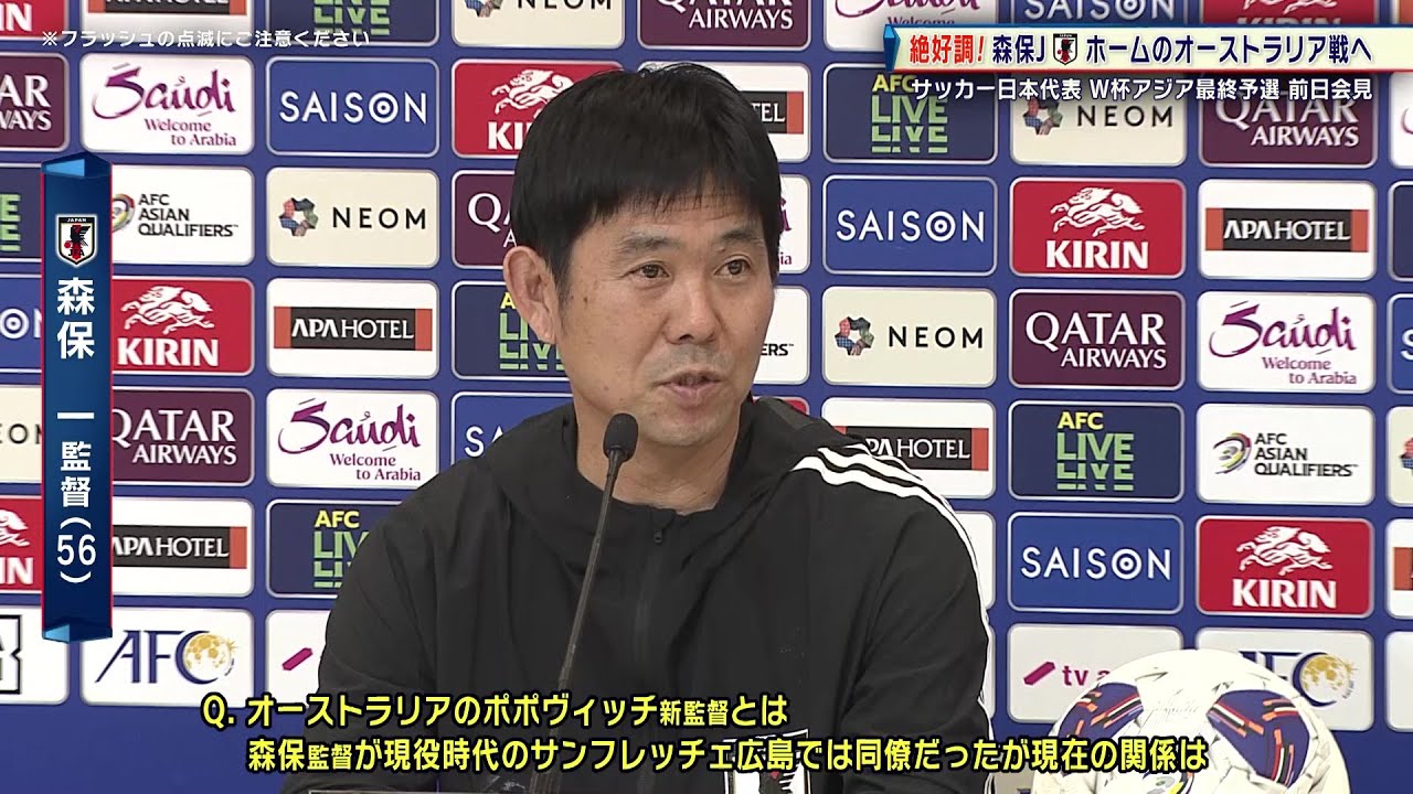 Won all three games in the North and Central America World Cup Asia Final Qualifiers. The Japanese national soccer team, which is in excellent form with 14 goals and 0 conceded, will host Australia at home on the 15th. Coach Hajime Moriyasu and player Hidemasa Morita expressed their enthusiasm at a press conference the day before. [GK]Keisuke Osako (Sanfrecce Hiroshima) Akio Tani (FC Machida Zelvia) Ayane Suzuki (Parma Calcio/Italy)[DF]Yuto Nagatomo (FC Tokyo) Shogo Taniguchi (Sint-Truiden VV) /Belgium) Akira Itakura (Borussia Mönchengladbach/Germany) Hiroki Machida (Union Saint Giroise/Belgium) Ayumu Seko (Grasshopper CZ/Switzerland) Yuse Sugawara (Southampton FC/England) Henry Kaiki Mochizuki (FC Machida Zelvia) ) Daiki Sekine (Kashiwa Reysol)[MF/FW]Wataru Endo (Liverpool FC/England) Junya Ito (Stade Reims/France) Takumi Minamino (AS Monaco/France) Hidemasa Morita (Sporting CP/Portugal) Yuki Ohashi (Blackburn)・Rovers/England)* Daichi Kamata (Crystal Palace/England) Kaoru Mitoma (Brighton & Hove Albion FC/England) Koki Ogawa (NEC Nijmegen/Netherlands) Daenen Maeda (Celtic/Scotland) Reo Hatate Hatate Leo (Celtic/Scotland) Ritsu Doan (SC Freiburg/Germany) Kiyo Ueda (Feyenoord/Netherlands) Ao Tanaka (Leeds United/England) Keito Nakamura (Stade Reims/France) Takefusa Kubo (Real Sociedad/Spain) ) Joru Chima Fujita (Sint-Truiden VV/Belgium) *First call-up Thursday, September 5, 2024 Round 1: Japan 7-0 China September 10, 2024 (Tuesday) Match 2: Bahrain 0-5 Japan October 10, 2024 (Thursday) Match 3: Saudi Arabia 0-2 Japan October 15, 2024 (Tuesday) Match 4: Japan – Australia November 2024 15th (Fri) Match 5: Indonesia – Japan Tuesday, November 19, 2024 Match 6: China – Japan Thursday, March 20, 2025 Match 7: Japan – Bahrain March 25, 2025 (Tuesday) Round 8: Japan – Saudi Arabia Thursday, June 5, 2025 Round 9: Australia – Japan Tuesday, June 10, 2025 Round 10: Japan – Indonesia ▼Please subscribe to the channel▼ https://www.youtube.com/tvtokyo_sports #Soccer #Hajime Moriyasu #Hidemasa Morita #FOOTBALL #Japan National Team #TV Tokyo #Sports #SPORTS #TV Tokyo