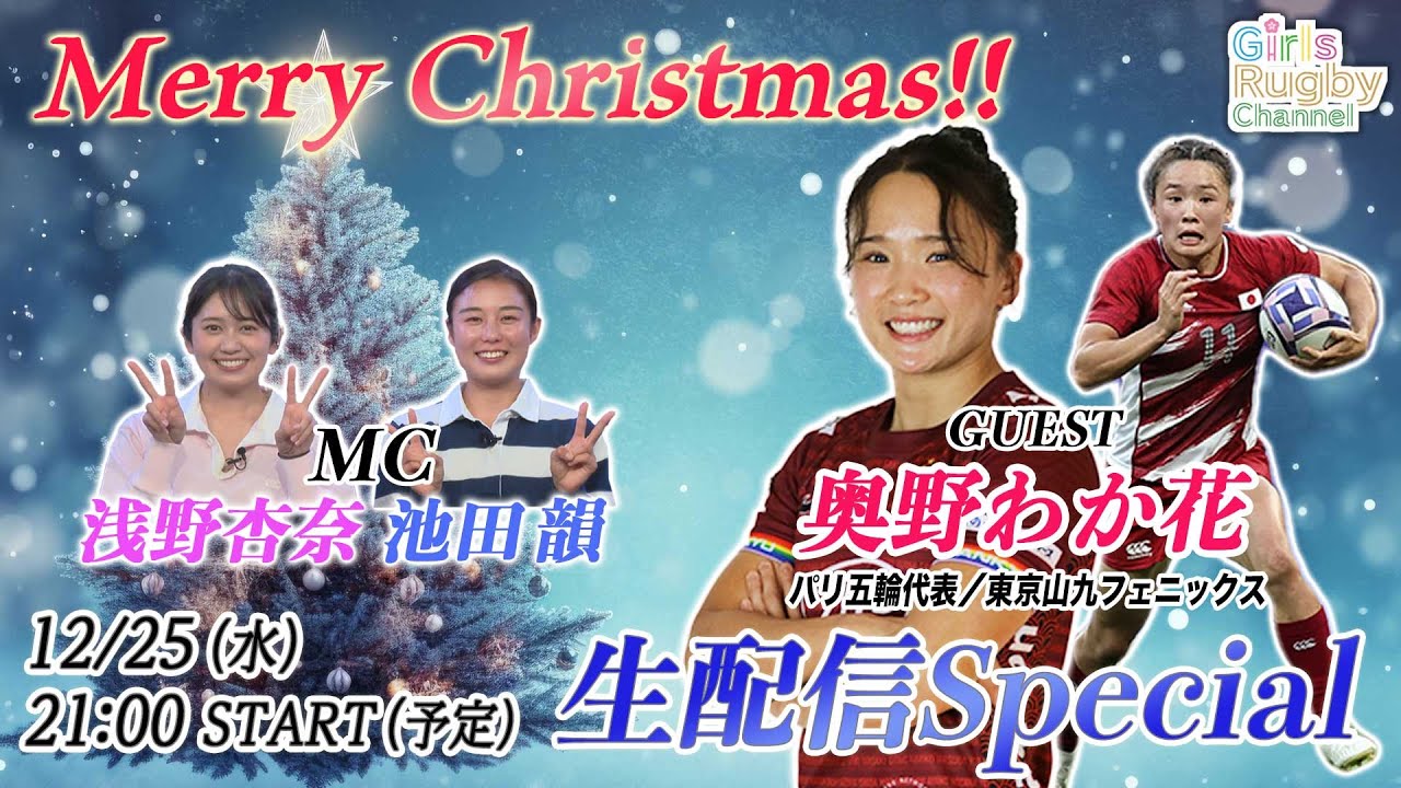 Girls Rugby Channel Live Stream Special Broadcast Date: December 25th (Wednesday) 21:00 ~ The first live stream guest of the memorable #GirlsRugbyChannel will be Waka Okuno, a member of the Tokyo Sankyu Phoenix, representing Japan in the Paris Olympics Sevens. Hana (maiden name: Hara). We will have a Christmas girls rugby talk with the two MCs, from their encounter with rugby to their private lives! Please feel free to send messages and questions to the MC and guests in the chat section during the broadcast! In addition, we will be holding a luxurious gift project for viewers in conjunction with Christmas! Please wait for information during the program for details. #Women’s Rugby #Anna Asano #Ryun Ikeda