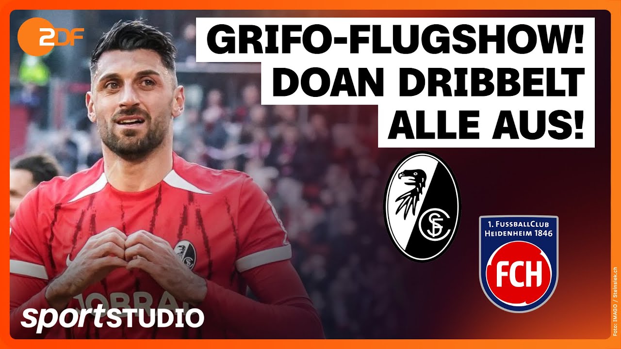 Led by winning scorer Vincenzo Grifo, SC Freiburg has increased the concerns of the relegation threatened 1. FC Heidenheim in the Bundesliga. The Breisgauer in the Baden-Württemberg state duel narrowly won 1-0 (1-0) and underpinned their ambitions in the fight for the European Cup places. Here are the highlights of the Bundesliga, the UEFA Champions League and the DFB Cup. In addition, the highlights of selected games of the 2nd Bundesliga and the women’s Bundesliga. Subscribe to the channel here: https://kurz.zdf.de/abosport/ FC Bayern of the 90s – shaped by types such as Matthäus, Klinsmann, Scholl or Basler – experienced the craziest years in club history. It is the birth of FC Hollywood. The five-part documentary series shows the record champion from a completely unexpected side: losing, chaos and in moments that are as funny and dramatic. Streaming here: https://kurz.zdf.de/optr1/ A new format and spectacle until the end of the preliminary round: The Reformed Champions League met the expectations at first glance, in any case the numbers are impressive. As many goals as ever and of course this crazy conference on the last matchday, which is still about something in almost all games. But what about the disadvantages where one point is always mentioned? All of this in a new episode Bolzplatz: https://kurz.zdf.de/u3jm/ Sportstudio at Instagram: https://www.instagram.com/sportstudio/ Sportstudio at Tiktok: https://www.tiktok.com/ @Sportstudio.de Sports studio at WhatsApp: https://kurz.zdf.de/6em3u/ Without his new left foot, the sports club struggled despite the clear ball possession plus, both teams neutralized in an intensive game with many interruptions in midfield. It was only after 27 minutes that Eren Dinkci, who changed from Heidenheim to Freiburg last summer, made a first warning shot after high ball. Shortly afterwards, Vincenzo Grifo met Ritsu Doan by flight headball. In a row, the Breisgauer stayed in front of 33,400 spectators on the trigger, Heidenheim acted completely without ideas in his own ball. This changed in the second round after switching to a double tip, the play of the outsider now got more structure. With a violent shot from 23 meters, Omar Traore hit the post (54th), Budu ZivziVadze checked Noah Atubolu (60th) for the first time. With increasing playing time, the Freiburg got more rooms, but the switching situations usually played very imprecisely. The exception was a crossbar by the strong Doant on the flank of Merlin Röhl (70th). Substitute Paul Wanner tested again on the opposite side in the final phase (90.+1). The lists: SC Freiburg: Atubolu – Sildillia, Ginter, Lienhart, Günter (90th Makengo) – Höfler, Eggestein – Doan (84th Best), Dinkci (62nd Röhl), Grifo (90. Osterhage) – Höler (62. Adamu) Trainer: Julian Schuster 1. FC Heidenheim: Müller – Traore, Mainka, Gimber (46th Pieringer), Föhrenbach (20th Busch) – Kerber (67th Conteh), Schöppner – Beck (80. Niehues), Krätzig (67 .