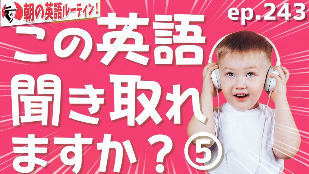 😃 Subscribe to the channel and get a high rating 👍 Please click! : https://www.youtube.com/channel/UC9Yva5b_FCTXHWHtLuvT7cw?sub_confirmation=1 ******************************** ***********************[Updated every morning at 7:00]Morning English routine! ep.243 Thank you for watching the video! This video introduces English words and idioms in junior high school English with example sentences. This series is released every morning at 7 o’clock, so please subscribe to our channel and use it for your daily English learning habits. ****************************************************** *****[Today’s Review List 243] Maximize your English learning effect / Just play it with a click so as not to waste your daily learning ❗ ↓ ↓ ↓ ↓ https://www.youtube.com / watch? v = qZwVmlPUHkI & list = PLWhwQk-dbSEH2iOCA1vEKlkWkJD6_8brY Listen to your review videos based on the forgetting curve of Ebbinghaus. It is effective to review at a timing that you may forget. ****************************************************** ***** First today’s sentence 10 1. At natural speed 2. At slow speed 3. At super slow speed 4. Check Japanese again 5. Natural speed English twice for men and women It will flow.[Chapter]0:00 See from the beginning again 0:27 Today’s sentence 10 4:52 Today’s repeat practice 6:01 Today’s shadowing practice 6:46 Yesterday’s review 7:53 7 days ago’s review 8:34 Today Dictation ↑ Click the number of seconds to jump to the place you want to see. Convenient for repeated practice. ****************************************************** *****[Happy Attendance System]When you have finished watching the video, please post an emoji or emoticon in the comment field as an attendance stamp for completing the study. Just post one emoji and you’ll be able to continue even if you’re a shaved person for three days. If you show up in the comments section every day, other friends will get a good stimulus from you and you can do your best! Continuation is power. Morning English routine! Series full video summary list https://www.youtube.com/watch?v=GudajHP3S2g&list=PL9U5HRoRSPXSnc1WckjRgEpBoFy-Nl139 ************************** *****************************[Review]Watch last week’s video at a glance! Playlist https://www.youtube.com/watch?v=TZI9FYDz-zI&list=PL9U5HRoRSPXSgLqajrWiD2b8-4cXeawOs *************************** **************************** 😃 SUBSCRIBE FOR MORE VIDEOS: https://www.youtube.com/channel/UC9Yva5b_FCTXHWHtLuvT7cw?sub_confirmation= 1 ***************************************************** ****** ☆☆ Recommended Video ☆☆ Tokyo Olympic Games to Learn in English 46 Pictogram https://youtu.be/2imMJtY–DA English Special Project Video https://www.youtube.com/watch?v = YAgTAMUPe3U & list = PL9U5HRoRSPXQOkptIRuMQ316c_SKeiN0S English conversation learned by animation https://www.youtube.com/watch?v=gGYg73SvF9A&list=PL9U5HRoRSPXTXrqsDnNuJ_P0CJCE watch? v = 7stb0rPM–E & list = PL9U5HRoRSPXSag0d-8Hw_goiDggZKP5Z-English hack video that accelerates English learning https://www.youtube.com/watch?v=Pf6gdL4Heww&list=PL9U5HRoRSPXT7sjMMcyKjb10 youtube.com/watch?v=zdgXFZZm5_Y&list=PL9U5HRoRSPXScPvmB8qmV7pQSfS1MZkRF[English]Diagnostic test in 5 minutes! What is your English vocabulary? https://youtu.be/FOJdvdUBeTw —————————————– — 🌟 Mercy’s English https://youtube.com/channel/UCn_HteN2wsftXXiVB9x16Rw 🌟 Twitter https://twitter.com/ehack_jp 🌟 LINE https://lin.ee/yQ2VceQ 🌟 Instagram https://www.instagram. com / ehack.jp/ 🌟 standfm https://stand.fm/channels/5f3f7168907968e29d4b7d0e ——————————- ————- #Morning English Routine #English Hack #Junior High School English #Learn at Home #English Words #English Grammar #English Conversation #English Listening #English Shadowing #English Study #Beginners ..