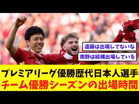 Premier League champions: Japanese players who have won the teams. Playing time in the team’s winning season #Soccer #Premier League #Liverpool #Endou Kou #Nanno Takumi #Okazaki Shinji
