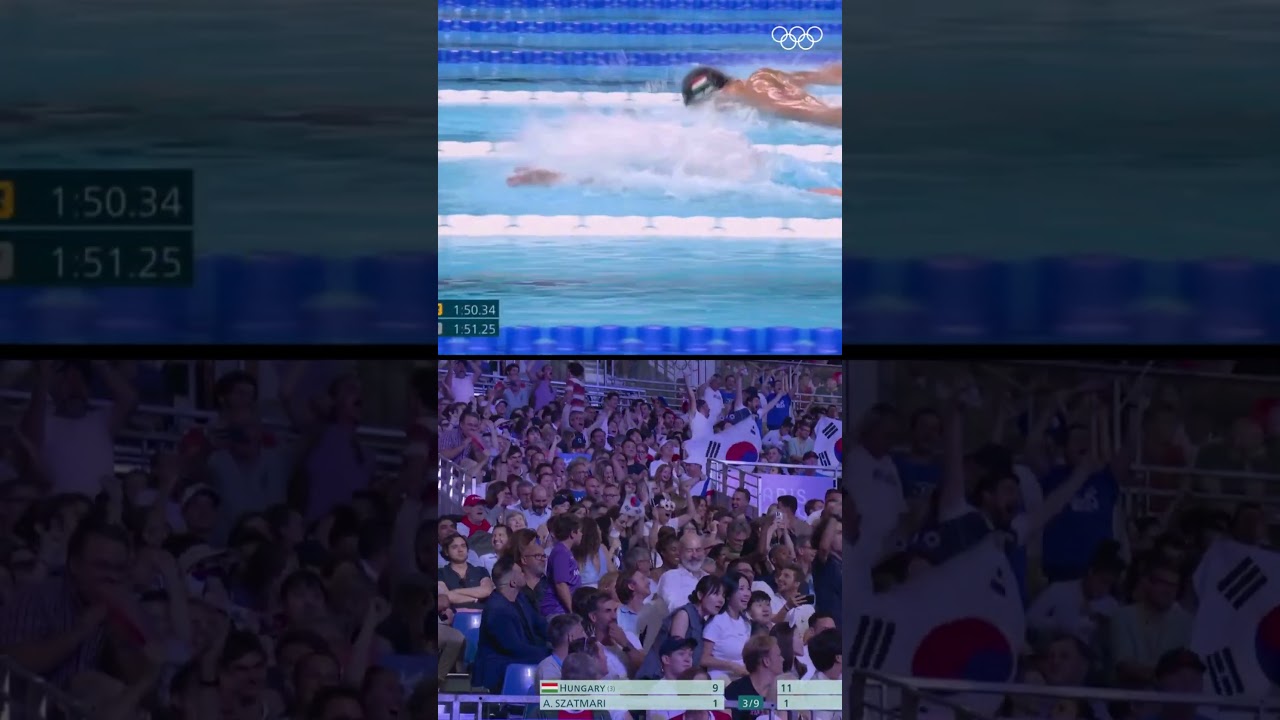 When Leon Marchand’s win brought fencing action to a halt! From seven kilometres away! 😲
