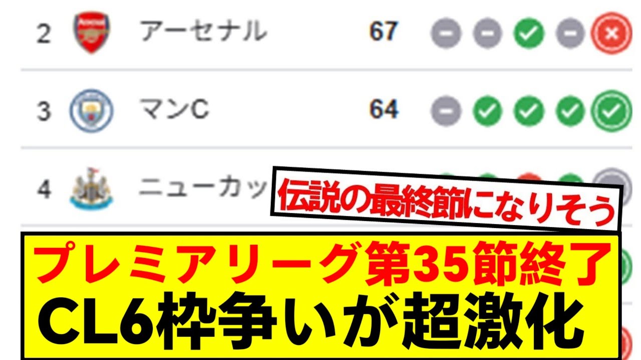 [Breaking News]The 35th round of the Premier League has concluded! Here’s the latest ranking! ! !