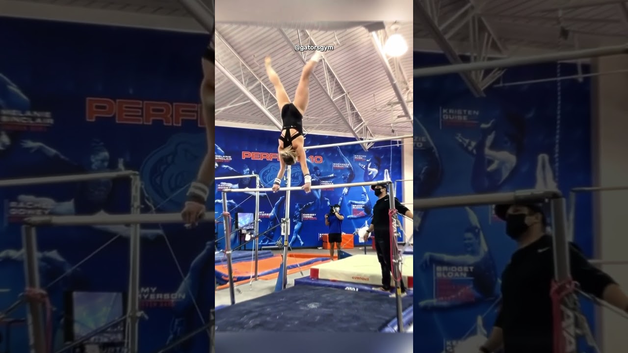 Riley McCusker’s uneven bars training.