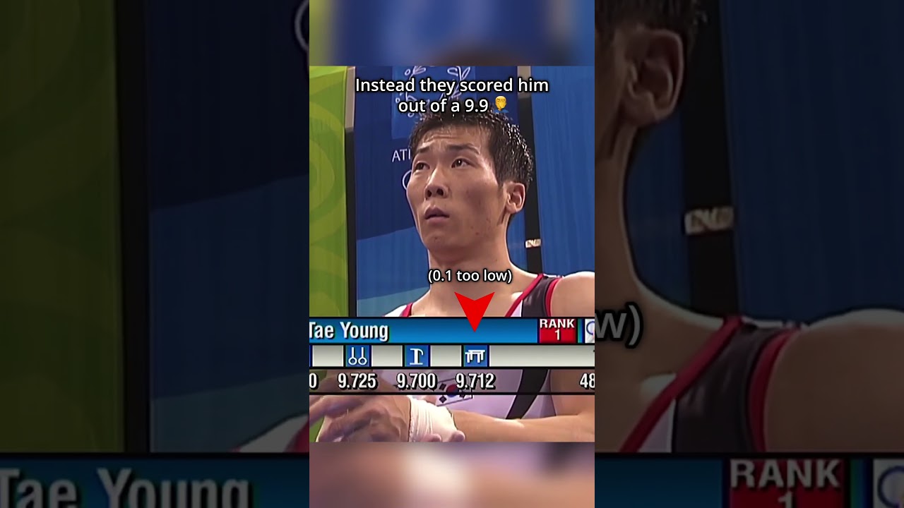 In the 2004 Olympic All-Around Final, South Korea’s Yang Tae-Young got a 9.9 start value instead of the correct 10.0 on parallel bars after judges thought one of his skills was something else. That 0.1 cost him the gold and dropped him to bronze. The mistake caused huge outrage, with appeals and even court cases, but Olympic officials refused to change the results even though they knew the judges had made a mistake.