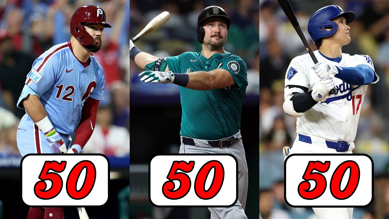 Phillies DH Kyle Schwarber (53), Mariners catcher Cal Raleigh (56) and Dodgers two-way star Shohei Ohtani (51) have all reached 50 home runs this season!