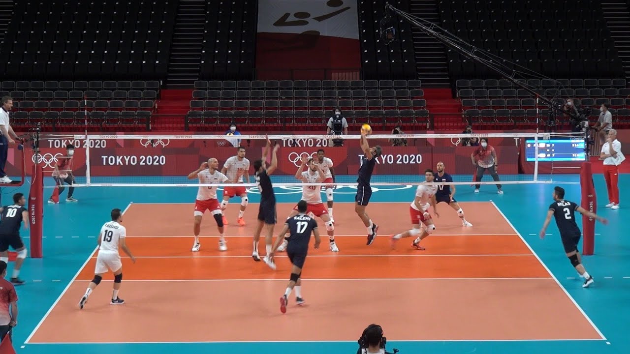 Saed Marouf setting Iran at Tokyo 2020 Olympic Games. 1st match against Poland.