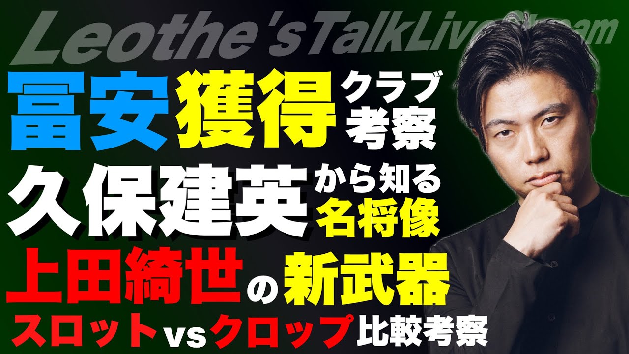 A club that acquires Takehiro Tomiyasu / The image of a great general who reads deeply from Takefusa Kubo’s remarks / Kiyo Ueda’s new weapon / A comparative study of slots vs. crop / Reasons why Araujo is a candidate for release / Common points among geniuses struggling at big clubs, etc.[Leoza’s soccer talk]