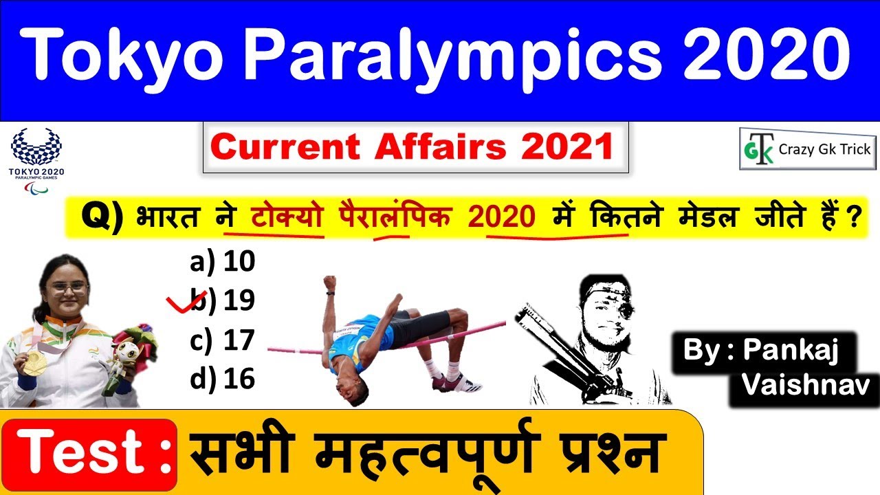 Paralympics Current Affairs | Tokyo Paralympics important questions | Gk Quiz | Paralympics Quiz | Sports Current Affairs 2021 | Paralympics current affairs 2020 | Olympic current affairs india | India in Olympics 2020 | Neeraj Chopra Paralympics | Current affairs 2021 | Important current affairs 2021 | टोक्यो पैरालंपिक 2020 | Current affairs 2021| Most Important Current affairs in Hindi | current affairs india | Current affairs Quiz | latest current affairs Quiz | Most Important current affairs | करंट अफेयर्स | crazygktrick current affairs | current affairs