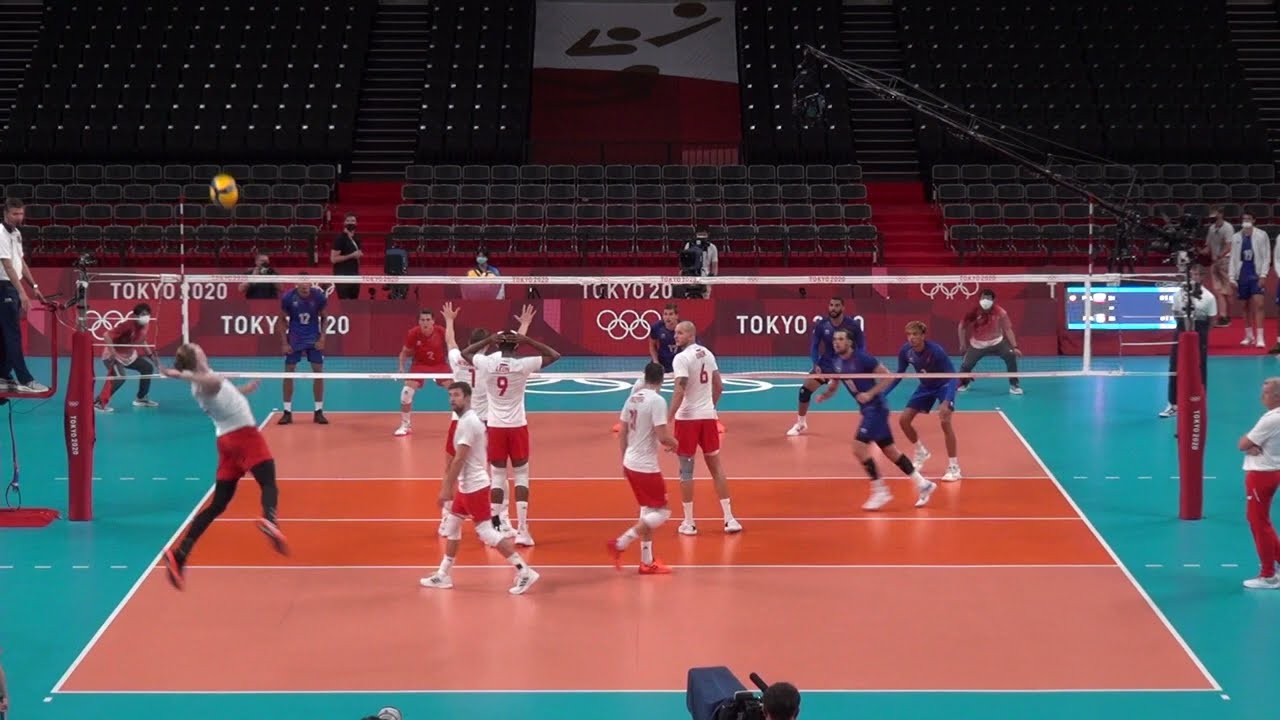 Poland going from defense to spike from Olympic Games Tokyo 2020. Some of the actions by Fabian Drzyzga, Wilfredo Leon, Bartosz Kurek, Jakub Kochanowski, Pawel Zatorski and others.