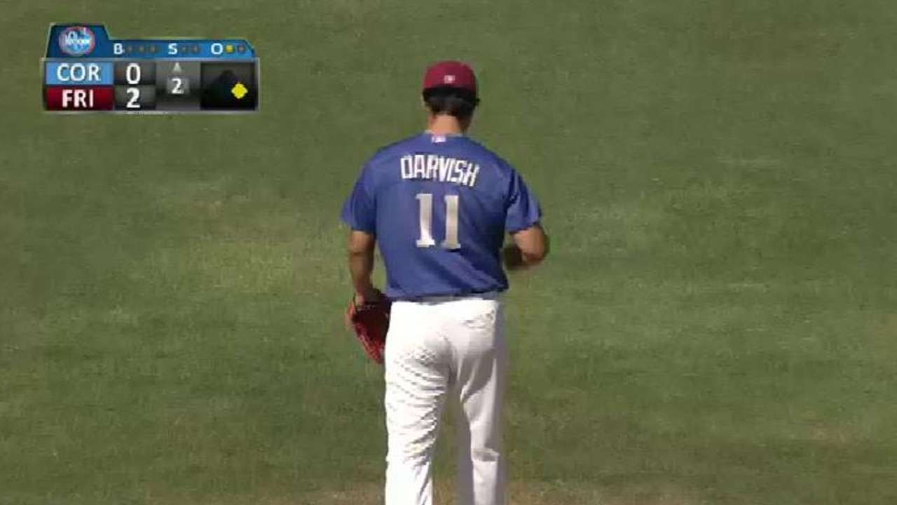 5/1/16: Frisco’s Yu Darvish strikes out Corpus Christi’s Danry Vasquez looking in his first rehab start since undergoing Tommy John surgery.