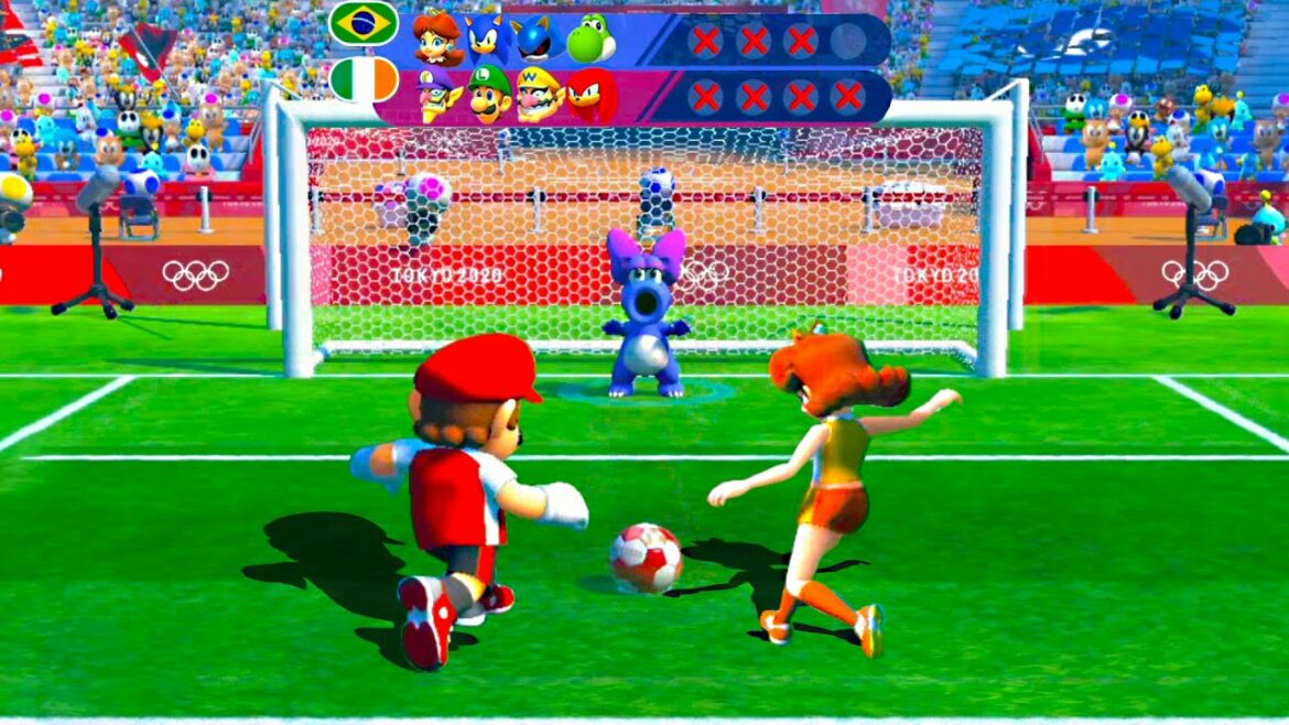 Mario and Sonic at the Tokyo 2020 Olympic Games Football Peach vs Mario , Daisy vs Waluigi