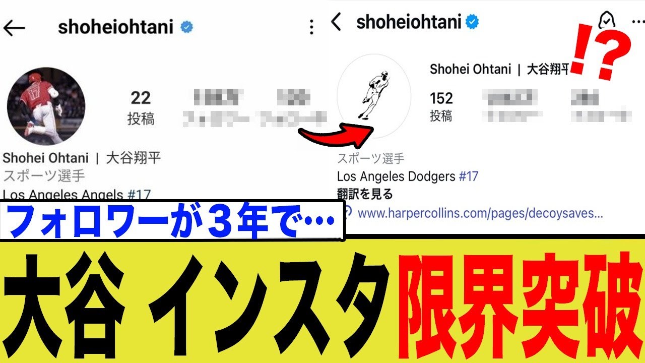 Thank you very much for watching. This channel focuses on first-class athletes who are active in the major leagues, and we also get to know their private lives! We will not only tell you about their brilliance as athletes, but also their true-to-life images as individuals, including their commitment to victory, their experiences with setbacks and overcoming, and their accomplishments outside the stadium. You will definitely be encouraged by their sincere attitude and positive way of life. MLB superstar Shohei Ohtani’s number of Instagram followers has exploded by about 9 million in just three years, and has finally surpassed 10 million! Behind his rise to the top as a Japanese athlete were his WBC championship, transfer to the Dodgers, and increased global attention. We will thoroughly explain the comparison with the soccer player with the world’s most followers and the behind-the-scenes of his incredible sponsorship income, along with real reactions from the internet. We will explore Otani’s “global influence” that goes beyond just the number of followers. #Shohei Otani #Instagram #Number of followers ******************************** ・There is no intention to harm the honor or infringe on the rights of any person, company, or organization appearing in this video.