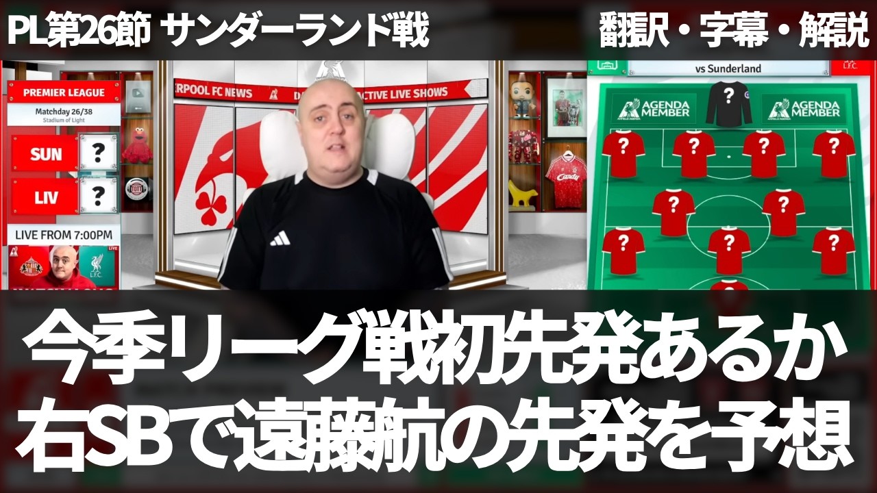 00:48 English/Japanese subtitles 09:31 Commentary #Wataru Endo #Liverpool #Overseas reaction Liverpool will play away to Sunderland in Round 26 of the Premier League. In the previous match against Manchester City, Szoboslai received a red card in the final minutes of the match and was suspended for that match. The right-back position is likely to be Curtis Jones or Wataru Endo, with Anfield Agenda’s Craig predicting that Wataru Endo will be used. Source: Channel name: Anfield Agenda Video title: SUNDERLAND vs LIVERPOOL! Starting XI Prediction & Preview Link: https://www.youtube.com/watch?v=Jj659_5z4bc Disclaimer: In this video, we have included clips from other creators for the purpose of commentary, criticism, or educational content, which falls under the fair use doctrine. We have made efforts to ensure that these clips are used in accordance with fair use principles and do not infringe upon the copyrights or licenses of the original creators. If you believe that any content in this video may infringe upon your rights, please contact us directly so that we can address the issue promptly. We appreciate your understanding and cooperation.