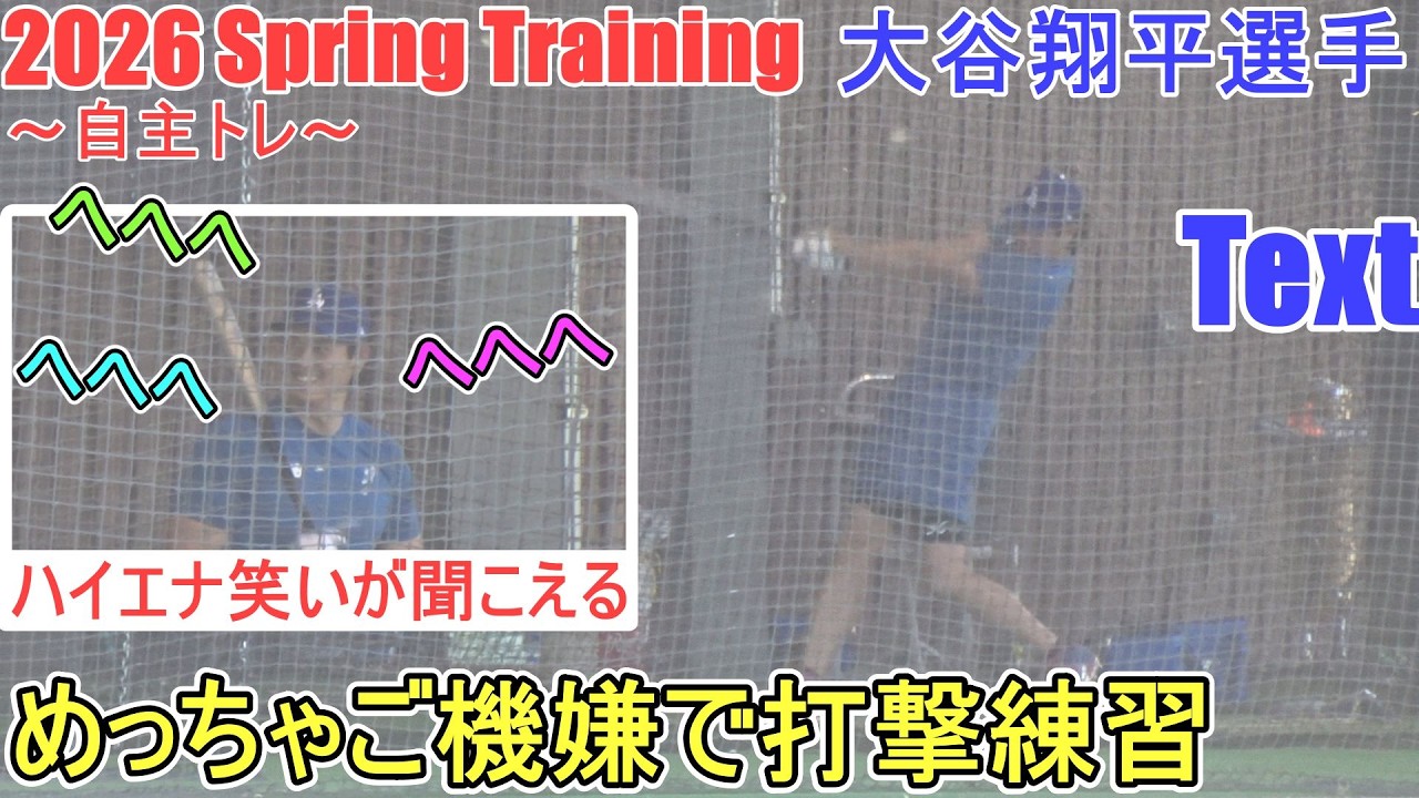 Shohei Otani practices batting in the cage. I could really hear that hyena laughing while I was chatting with the coach. Batting practice in a really good mood! ~Independent training~ Camelback Ranch 2026.02.12 @shinsukehandyman #Shohei Otani #shoheiohtani #dodgers