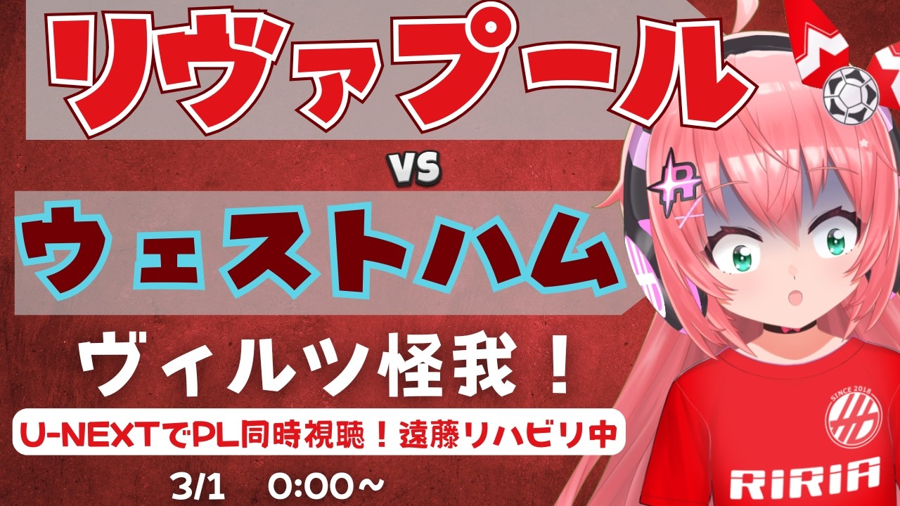 kind! fun! cute! Fluffy☆ Soccer tuber Hikari Riria! Liverpool play West Ham United at home! Wirtz is injured, Salah and Ekitike are out of form in Ramadan, how on earth will they attack? ? It’s a difficult situation! Wataru Endo is undergoing rehabilitation! Forever DJ20 *Game footage will not be streamed on this channel! Let’s watch it on U-NEXT! Please comment on this broadcast as if it were a radio! If possible, let’s watch the game together and have fun! Please refrain from saying hurtful words and comment with kindness! Welcome to Hikaru Riria’s cute soccer commentary radio! Let’s watch and talk about Premiere League! This stream is a football radio! *This channel is a virtual character channel managed by an adult person. Main Language (95%):Japanese Sub Language (5%):English Dot anime: @SiauwAdhie Player list: TAKTIKALista https://tacticalista.com/ Original song production: @pizuyascell_toho ☆☆☆☆☆☆☆☆☆☆☆☆☆☆☆ Thank you for Watching! I’m Japanese Virtual YouTuber,Riria Hikari. I wanna be a girl’s anime character! Call me “Riria” or “Riazou”. #Riria Hikari #Riria Hikari Football Radio #Liverpool #Manchester City