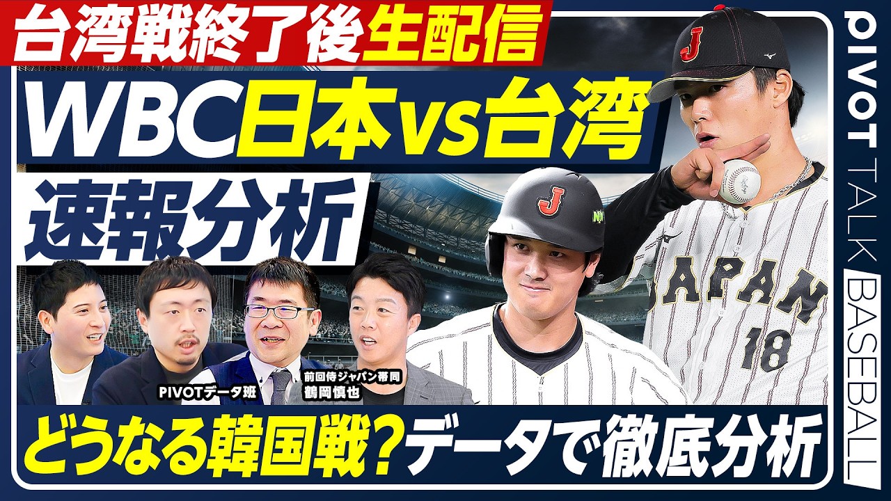 Starting around 10pm on Friday, March 6th, we will be looking back at “WBC Japan vs. Taiwan” and thoroughly analyzing the outlook for the match against South Korea. 🔔Please set up notifications and wait▼ Click here for previous videos https://www.youtube.com/playlist?list=PL-edxQ__zW_XeFD20UHGC-F_TodBTCiXi Shinya Tsuruoka | Former professional baseball player From Chonan High School, joined Mitsubishi Heavy Industries Yokohama and joined Nippon-Ham in the 8th pick of the draft. He has been active as a catcher for Nippon Ham and Softbank for a long time. Due to his sincere and humorous personality, he was loved not only by his teammates but also by many fans. Yusuke Okada | DELTA President Specializes in sabermetrics to explore the structure and strategy of baseball. 2011 Established DELTA, which handles sports data analysis. 2016 Established “1.02-DELTA Inc.” to publish aggregated and calculated data. https://1point02.jp/op/index.aspx Hayaya Yamada | Data Stadium Analyst Accompanied the Japanese national team in the 2017 and 2023 WBC. As an analyst, he was in charge of scouting opponents and conveying information to players. During the season, he provides data analysis support for professional teams. Data cooperation/provided by: Data Stadium Data Stadium official website: https://datastadium.co.jp/ Photo: Sports Hochi/Afro #Yoshinobu Yamamoto #Yusei Kikuchi #Baseball #baseball #WBC #MLB #Major #NPB #Professional Baseball #Shohei Otani #Pitcher #USA #Championship #Continuous Victory #World’s #1 #Japan #Samurai Japan #Samurai JAPAN #Member #Sports #Nishikawa Noritaka #Hirokazu Ibata #Data #Goal #Business #Book #Book #Higashi Hanamaki #Average ball speed #Interview #Darvish #Camp #Netflix #1st round #Taiwan #Korea #Czech Republic #Australia #Chinese Taipei #Dominican #Venezuela #Puerto Rico #Major group #match #Japan national team #Netflix #Taiwan match #live broadcast #digest #analysis #Shinya Tsuruoka #PIVOT #pivot