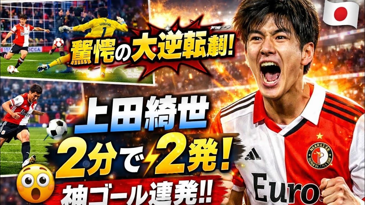 There are moments in soccer where history can change in just a few minutes. And this match was just such a “goosebumps” level drama. Famous Dutch club Feyenoord faced Excelsior Rotterdam in a hard-fought Eredivisie round 27 match. However, in the early stages of the game, the atmosphere in the stadium suddenly turned cold when they conceded a goal. Just when many fans were feeling anxious, one striker completely changed the fate of the match. The name is – Ayase Ueda. The first half was tough. Although Feyenoord created many chances, they were denied by the opponent’s goalkeeper’s super saves. Furthermore, at the beginning of the second half, when Ueda appeared to have scored a goal after making a perfect breakaway, he was unexpectedly judged to be offside. The joy disappeared in an instant, and the stadium was filled with voices of disappointment. However, this incident may have been more of an “awakening switch.” After that, Ueda showed concentration like a completely different person. He calmly trapped a cross from the left side and fired a wazaari shot from the outside that went into the net to tie the score. Then, just two minutes later, he broke through the defensive line with lightning speed and calmly scored a one-on-one with the goalkeeper to score a come-from-behind goal. The stadium exploded in an instant. It was a moment that completely changed the course of the game in just a few minutes. Ueda scored 2 goals in this match, bringing his total this season to 22 goals. He truly showed his presence as an ace to the world. For Feyenoord, this victory was also a very significant match in the battle for league position. This video provides an easy-to-understand explanation of the flow of that “unbelievable comeback” and Kiyo Ueda’s amazing decisiveness and speed. If you are a soccer fan, be sure to check out the heart-pounding moment until the end. How did you feel at the moment of this goal? Please let us know in the comments. #Kiyo Ueda Ayase Ueda, Feyenoord comeback win, Ayase Ueda brace, Japanese football stars, top football goals 2026, Eredivisie match highlights, Ayase Ueda 22 goals season, football dramatic comeback, Feyenoord latest match, Excelsior vs Feyenoord analysis, viral football moments.