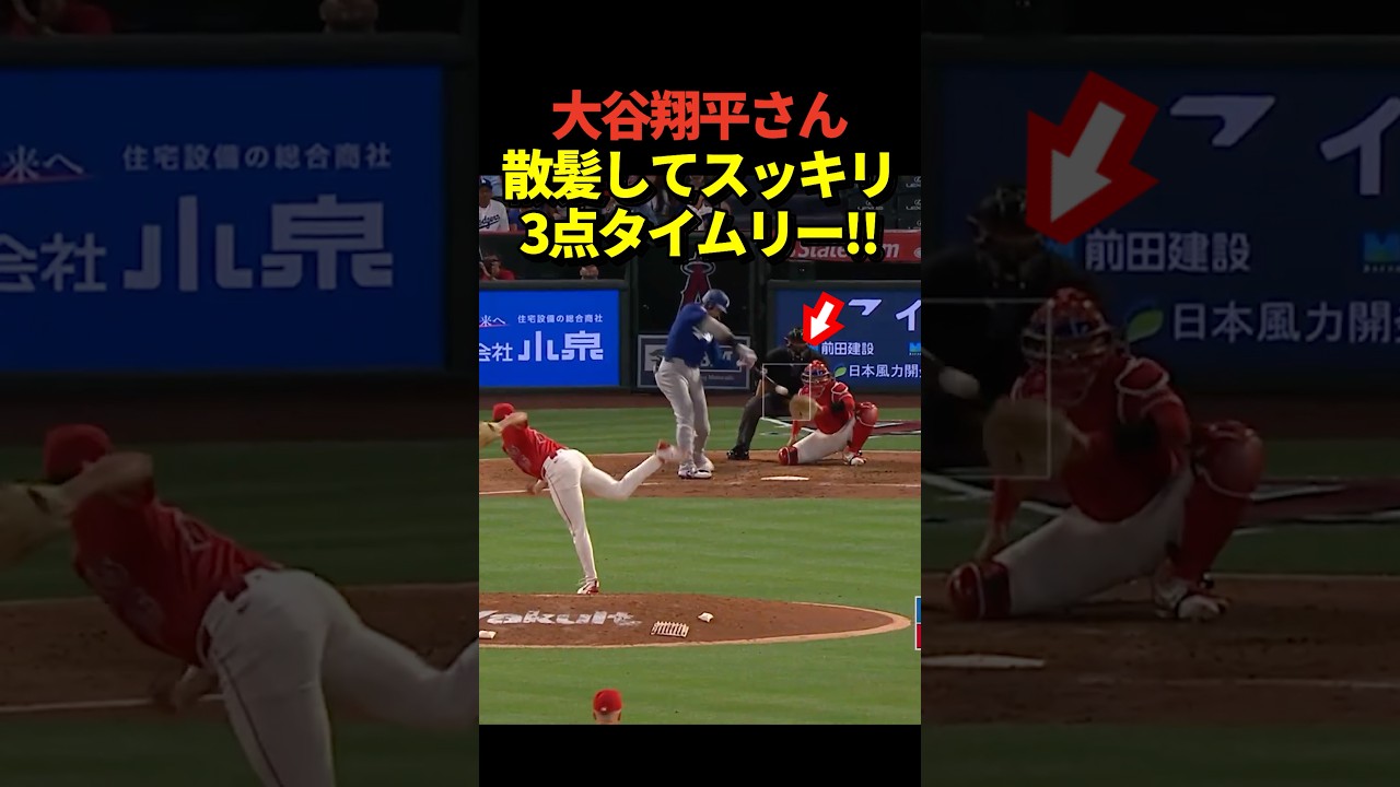 Pitcher Shohei Otani takes a chance with the bases loaded and wipes out the runners with a 3-point timely two-base hit! Get a haircut and feel refreshed! #shoheiohtani #Shohei Otani #dodgers #shorts