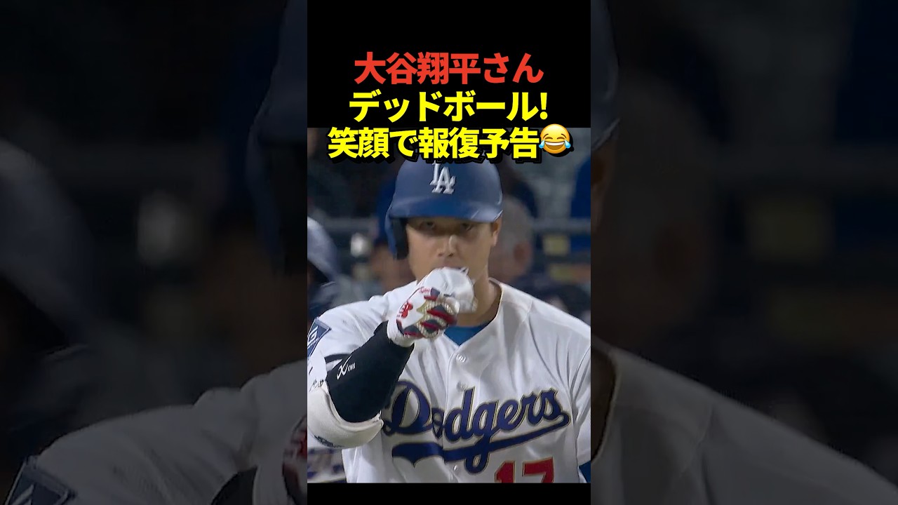 Pitcher Shohei Ohtani receives a dead ball! As he walks to first base, he makes a gesture that says, “Next time I’ll throw it back,” and shows a smile! #shoheiohtani #Shohei Otani #dodgers #shorts