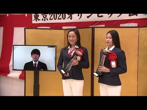 式にはいずれも岩手町出身で、女子ホッケー日本代表の及川栞選手と瀬川真帆選手、それに男子ホッケーの田中海渡選手の3人が出席した。