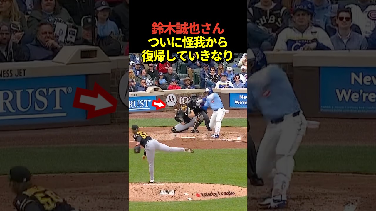 Seiya Suzuki has returned from an injury sustained when stealing a base at WBC! In his second turn at bat, he immediately records his first hit of the season!