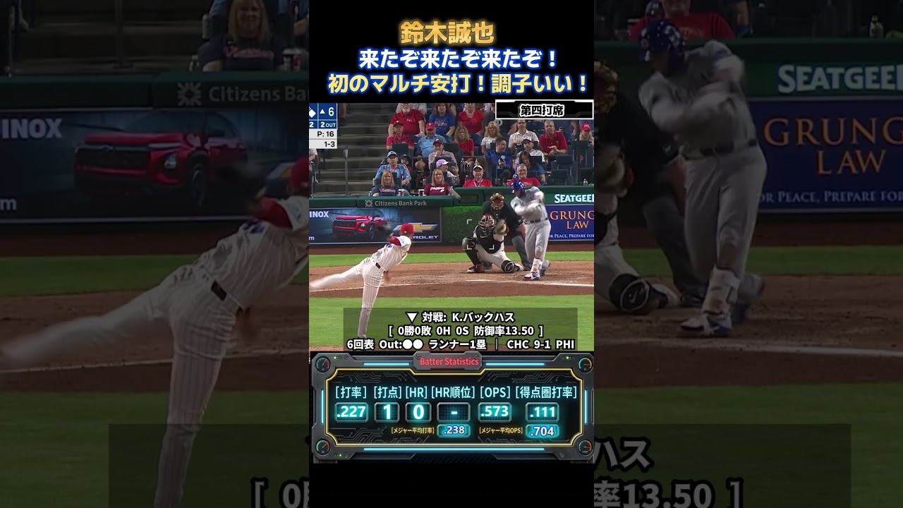 Suzuki of the Cubs recorded his first multi-hit game of the season and contributed to the big win. In the 5th inning, he hit center field. In the 4th at-bat of the 6th inning against the left-handed Buck Huss, with the count 2-2, he missed a strikeout with an inside two-seam, but it was a “challenge”. He covered the ball and bounced it back to the right from a full count.