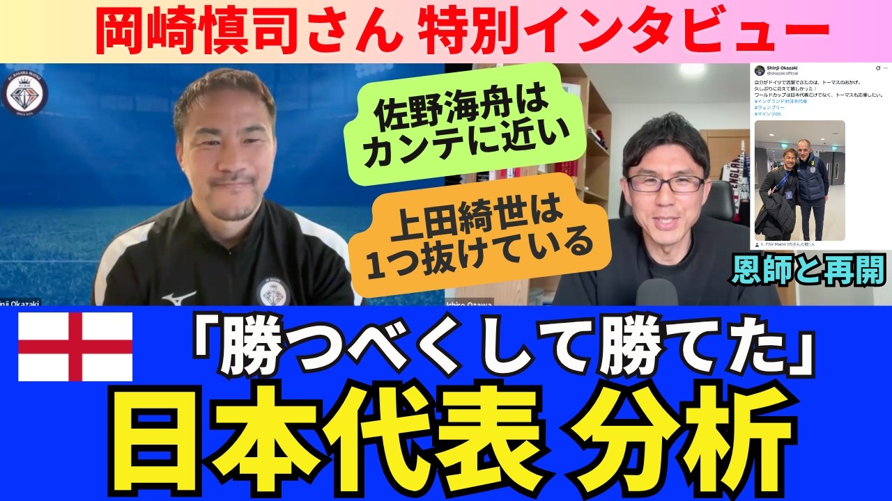 Recording date: April 10, 2016 Shinji Okazaki Dialogue w/ (Dialogue With) – A challenge to the world https://www.synchronous.jp/ud/content/621137607765615d31010000 Shinji Okazaki “Dialogue w/ (Dialogue With)” Official X https://x.com/so_dialoguew[Table of Contents]0:22 Teacher Tuchel 5:06 Aimed coach image 7:51 England (0-1) Japan 14:50 Shadow appointment of Mitoma 16:16 WB selection 16:54 Kaishu Sano 18:16 Physical condition of Japanese players 20:02 Daichi Kamata appointment as a volunteer 22:00 Hidemasa Morita 24:18 Kiyo Ueda and forward selection 28:51 Japan national team’s World Cup prospects 31:40 Evaluation of Japanese soccer Una Entrada (1 ticket): Membership https://www.youtube.com/channel/UC5SC8M_t0dS7jT732ixN8mw/join Periodista Ichiro Ozawa official goods shop https://ichro-ozawa.booth.pm/[Song provided by: Hikari Surprise Co., Ltd.]#Japan National Soccer Team #England National Team #Shinji Okazaki