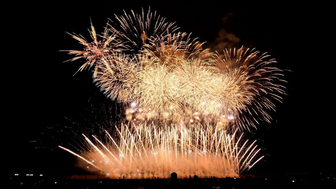 2020東京オリンピックのテーマソングにのせて、日本選手が獲得した数の金銀銅メダルの花火が打ち上がります。