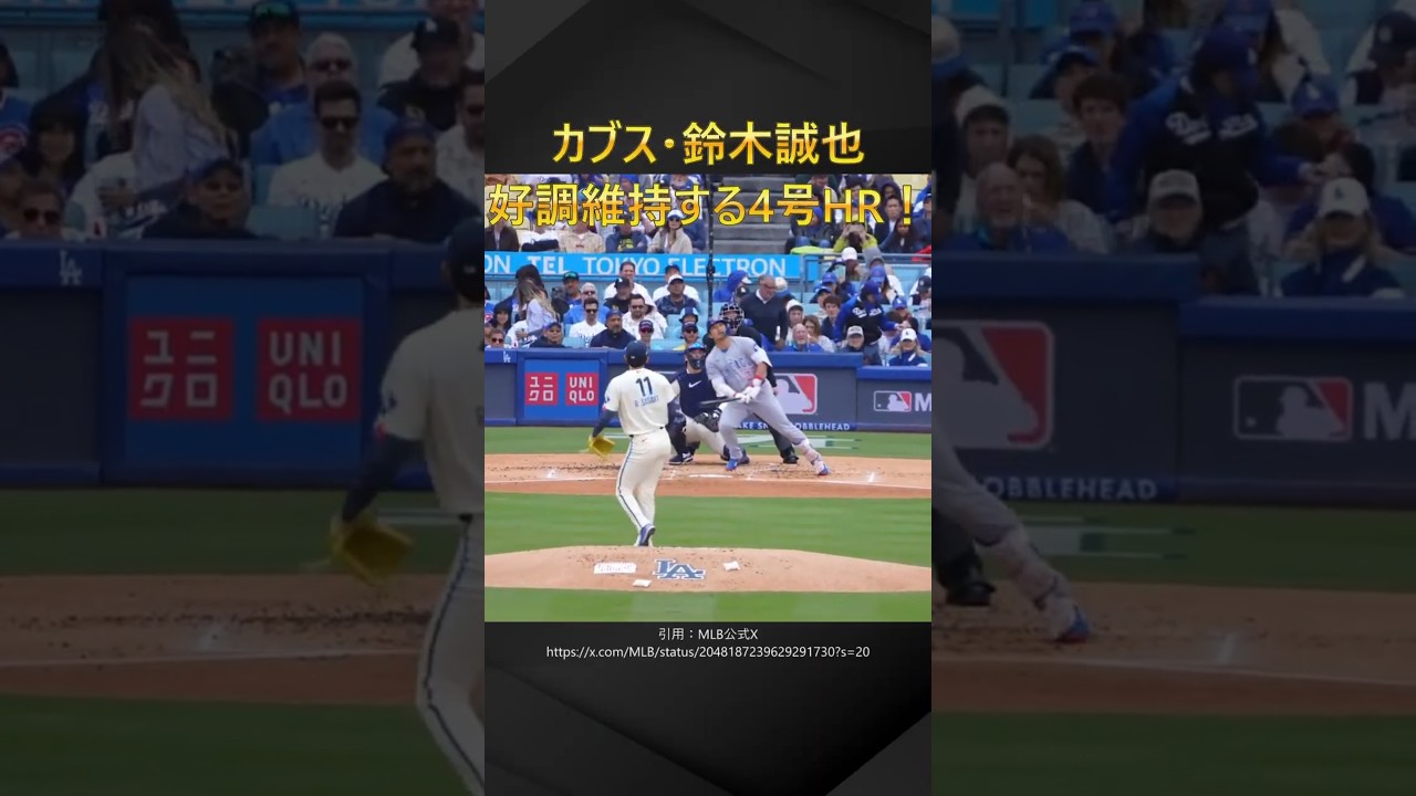 On April 26th, Japan time, Seiya Suzuki hit his fourth solo home run of the season off pitcher Aki Sasaki during the Cubs vs. Dodgers game! On the other hand, Dodgers player Otani also showed signs of recovery with his first hit and stolen base in four games, and pitcher Sasaki got his first win of the season with 4 runs allowed in 5 innings! 7MKUXJCKWN7WLQO7 #Baseball #Professional Baseball #Baseball #Major League #Dodgers #Shohei Otani #Yoshinobu Yamamoto #Aki Sasaki #Manager Roberts #Cubs #Seiya Suzuki #Shota Imanaga #Japanese Major Leaguer #Bobblehead Day