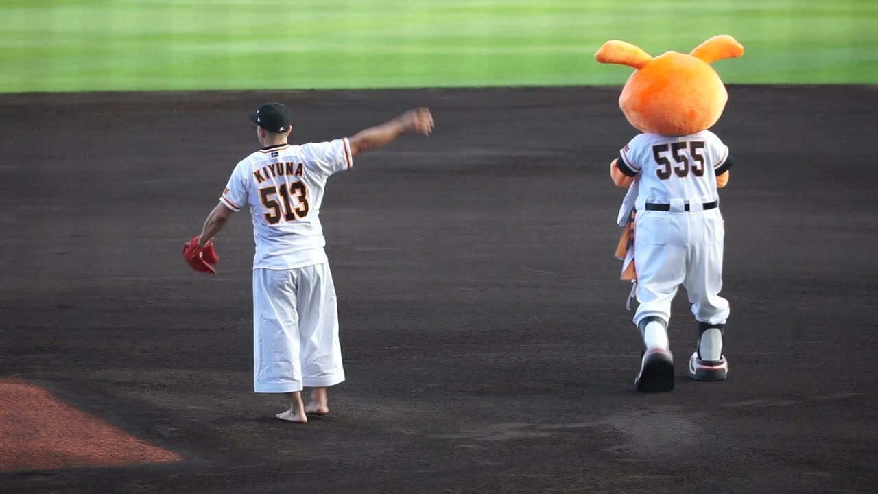 【喜友名諒 始球式】シーサーが見守る中行われた始球式 東京五輪空手形金メダリスト 2022年4月13日