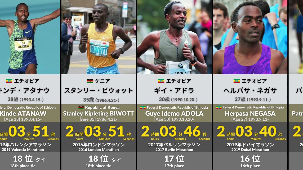 陸上男子マラソンの世界ランキング歴代トップ20です。