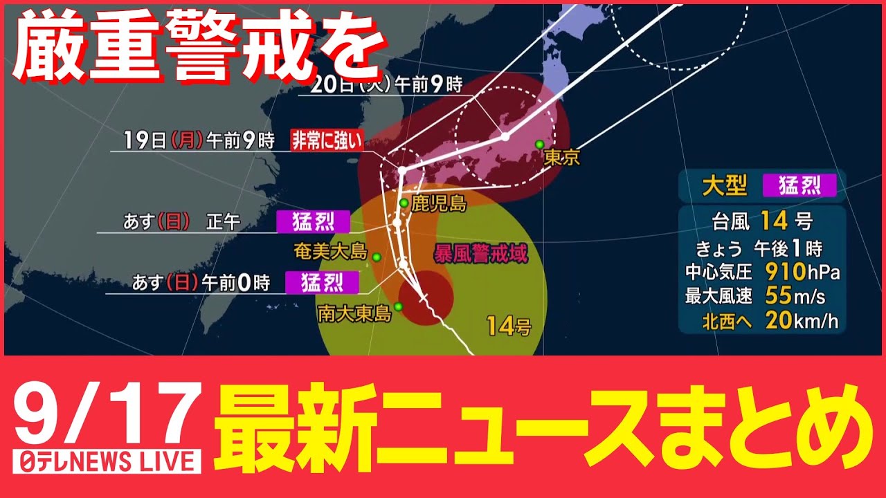 ・Breakwater collision 5 people killed and injured Alcohol detected in deceased captain’s body ・Two boys who “got into a fight and were stabbed” were cut by someone Sakai City, Osaka ・Former director, “ADK Holdings” also on the organizing committee side Tokyo Olympics, para-corruption, “My daughter loved it…” “Bleach” was added to school lunch curry Female elementary school teacher arrested Shocked parents, methanol… Expert “just took a sip…” Ichisankyo “Researcher” Murdered Wife JR East “Off-Peak Commuter Pass” to be Introduced Next Year About 10% Price Reduction Policy, etc. (Updated September 17, 2022) # Olympics # Putin # Zelensky # Ukraine # Russia # Typhoon No. 14 #Typhoon #Elizabeth #Bleach #Methanol #Disaster #Nippon Television #Latest News #Summary #Live #LIVE​ #News www.instagram.com/ntv_news24/?hl=ja TikTok https://www.tiktok.com/@ntv.news Twitter https://twitter.com/news24ntv ◇[Latest news LIVE delivery]NTV NEWS HP https: //news.ntv.co.jp/