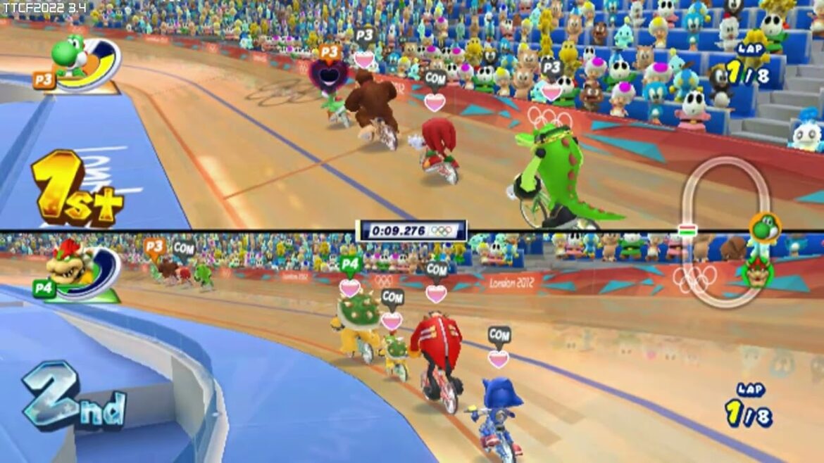Mario and Sonic at the London 2012 Olympic Games for wii – TAS test 4 player cycling playaround