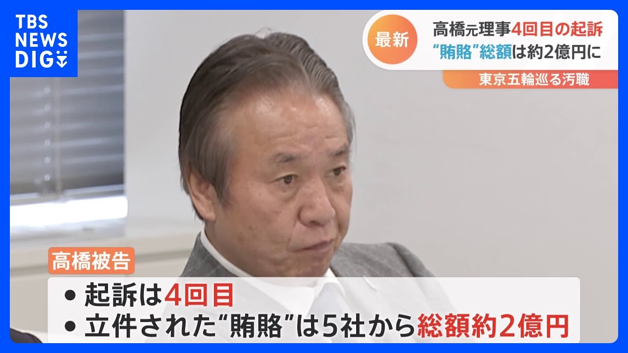 This is the fourth indictment against Haruyuki Takahashi, former director of the Organizing Committee of the Tokyo 2020 Olympics and Paralympics. Defendant Haruyuki Takahashi, 78, a former director of the organizing committee of the Games, received about 47 million yen from major advertising company ADK in connection with the sponsorship contract for the Olympics and the sale of licensed products, and from Sun Arrow, a mascot stuffed toy company. Today, he was additionally indicted for accepting bribes of about 7 million yen. Q. What kind of relationship do you have with Takahashi? Defendant Joji Matsui “…” In addition, defendant Joji Matsui (75), an acquaintance, was accused of accepting bribes in conspiracy with defendant Takahashi, former president of “Sun Arrow” Yoshihiro Sekiguchi. The defendant (74) and two others were each indicted without detention. Takahashi has been indicted for the fourth time, and the total amount of bribes he received from five companies totaled about 200 million yen. The Special Investigation Department indicted Takahashi four times. It seems that there was an aim to solidify the evidence from various aspects against Takahashi, who denies it. Defendant Takahashi argued against the funding from the men’s clothing major “AOKI”, which was first filed, saying, “I have never worked as a director with a legitimate consulting fee.” However, the Special Investigation Department further prosecuted Takahashi for colluding with his acquaintances to receive bribes from major publishing company “KADOKAWA” and advertising company “Ohiro”. And today, I added two new routes of conspiring with another acquaintance, Defendant Matsui. In a series of investigations, defendant Takahashi had a strong influence on the organizing committee regarding the Tokyo Olympics, such as the selection of sponsors and contracts for licensed products. The actual situation of receiving funding using various routes emerged. The Olympic corruption trial is scheduled to begin next month. Defendant Takahashi is believed to have consistently denied the content of his indictment, and the company’s testimony regarding bribery will be the focus of attention in the trial. ▼TBS NEWS DIG official website https://newsdig.tbs.co.jp/ ▼Please subscribe to the channel! http://www.youtube.com/channel/UC6AG81pAkf6Lbi_1VC5NmPA?sub_confirmation=1 ▼Provide information here “TBS Insiders” https://www.tbs.co.jp/news_sp/tbs-insiders.html ▼Provide video Click here for “TBS Scoop Post” https://www.tbs.co.jp/news_sp/toukou.html