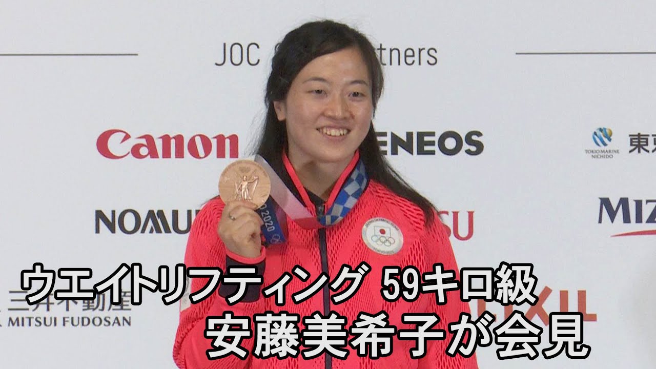 Mikiko Andoh, who won the bronze medal in the weightlifting women’s 59 kg class at the Tokyo Olympics, held a press conference in Tokyo on the 28th. ..