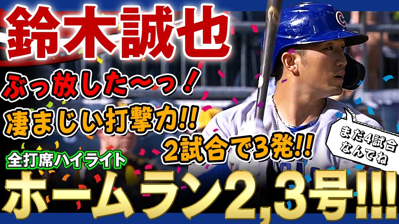 Seiya Suzuki hits two home runs in a row! ! 3 solid hits in 2 games! Tremendous striking power! Currently, Major Top Thailand! Seiya Suzuki is amazing! All at-bat highlights! ▼Champter 0:00 Opening 0:26 1st at bat 0:55 2nd at bat 2:33 3rd at bat 3:47 4th at bat ▶MLB game results▽April 13, 2022 ⚾MLB Cubs vs. Pirates ▼Cubs win : Smiley (1 game, 1 win, 0 losses, 0 saves) Home run: Seiya Suzuki No. 2 (5 innings, Quintana), Seiya Suzuki No. 3 (7 innings, Banda) Stolen base: None ▼ Pirates Lost: Quintana (1 game, 0 wins, 1 loss) 0 saves) Home run: Reynolds No. 1 (8 innings, Givens) Stolen base: Hayes (6 innings) ▶ Seiya Suzuki data Seiya Suzuki’s uniform number is 27 , 2021) * Acquired for the first time in Heisei era with Yuya Mori ・Highest on-base percentage: 2 times (2019, 2021) Seiya Suzuki Other records ・Sayonara home runs in 2 consecutive games ・Battering average for 6 consecutive years 30% ・25 home runs (2016) 2021) * 3rd person in history, 6 consecutive home runs: September 3-9, 2021 * 16th person in history, 3rd person in team history, home run in 1st at-bat in 5 consecutive games: September 2021, 9- 9th * First time in history 💰 Seiya Suzuki’s major annual salary ・ 2022 $ 7 million (approximately 805 million yen) ・ 2023 $ 17 million (approximately 1.96 billion yen) ・ 2024 $ 20 million (approximately 2.3 billion yen) ) ・ 2025 $ 18 million (about 2.07 billion yen) ・ 2026 $ 18 million (same) ▽ Please subscribe to the channel! http://www.youtube.com/channel/UC7–KNbZtfJhdZ0fydt3tMA?sub_confirmation=1 # Seiya Suzuki # Seiya Suzuki home run # Cubs